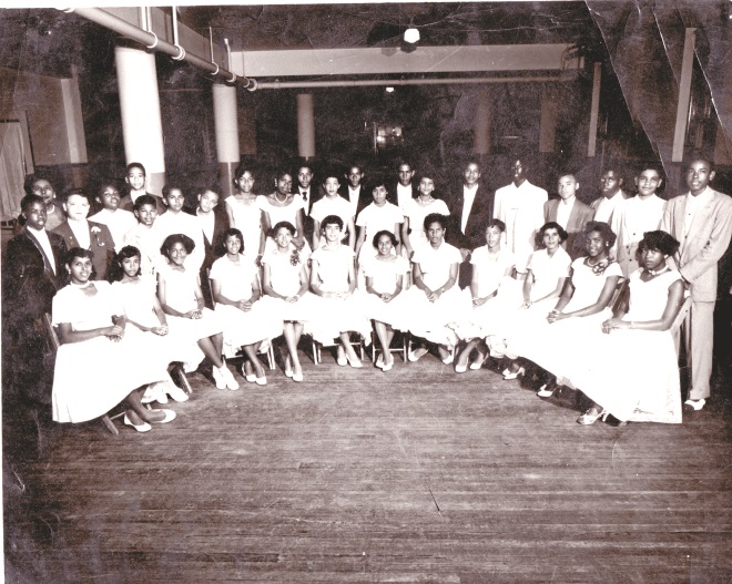 由于种族隔离制度的存在,种族问题一直萦绕在我们的脑海中。在新奥尔良,由于肤色主义,情况变得复杂起来,导致了黑人社区内部的歧视。一个假冒白人(passé blanc)是可以被接受的,也就是白天在工作时冒充白人,之后在社区里变成黑人的人。如果看看我八年级时的班级合影就会有所了解(见下图),那个站在我旁边的是我的好朋友阿尔文·麦凯纳(Alvin McKenna,最左边穿着深色西装)。